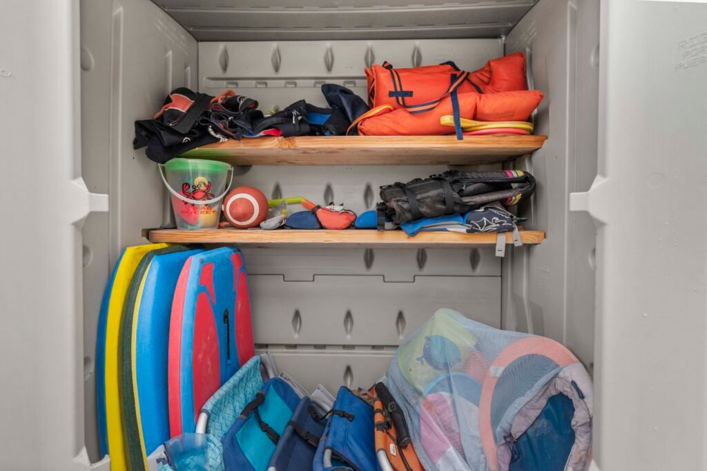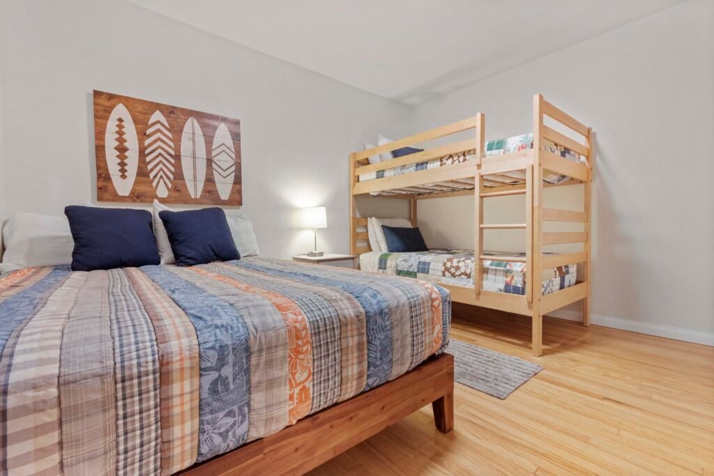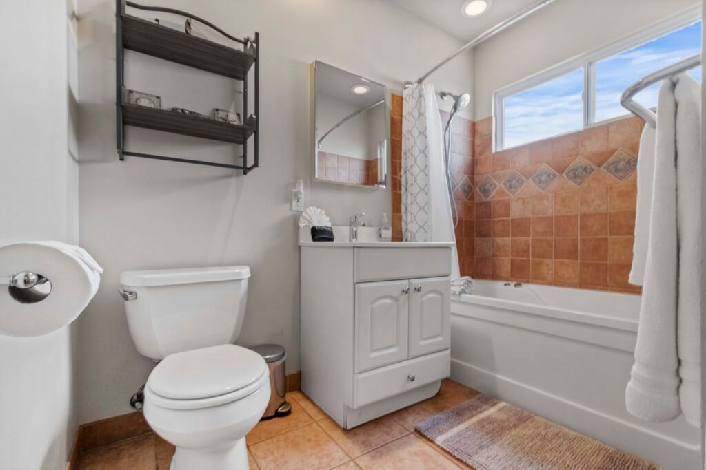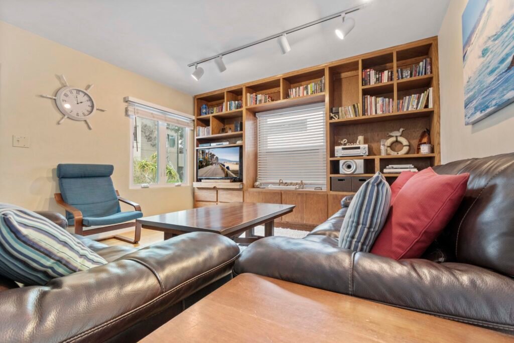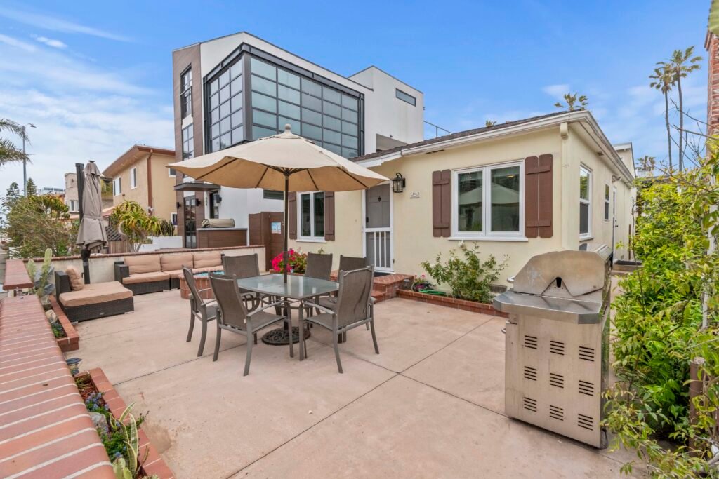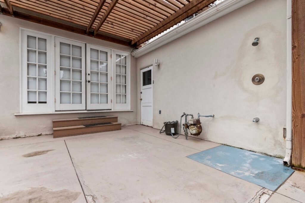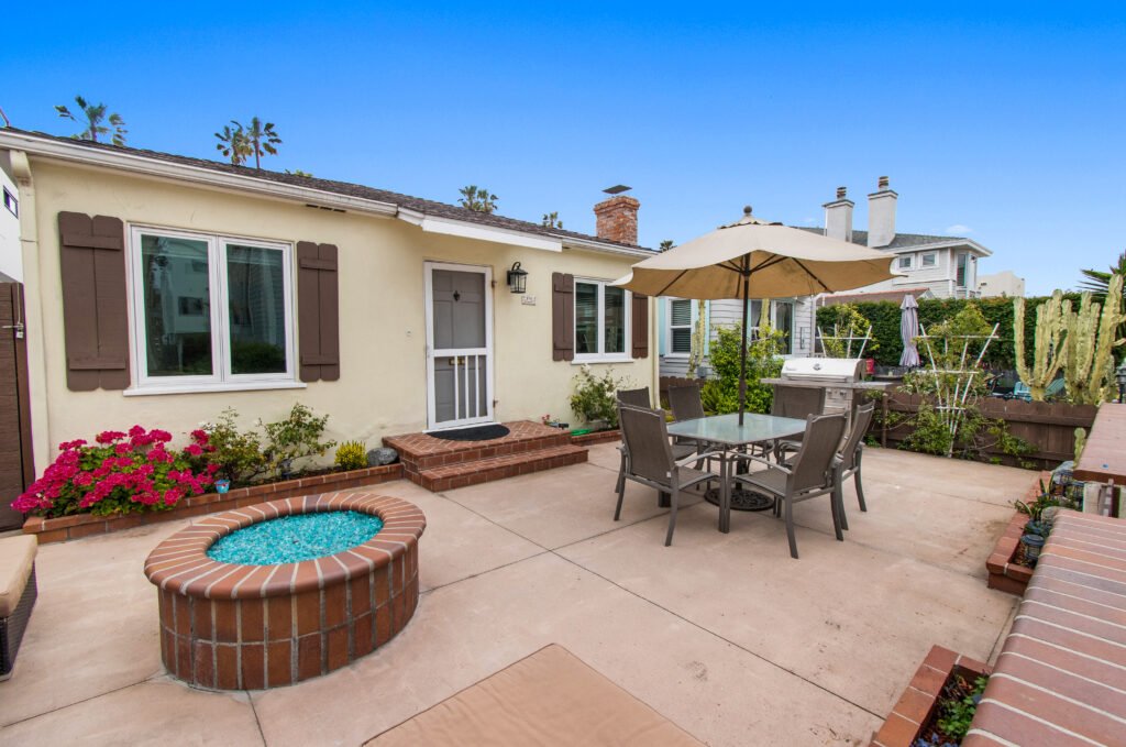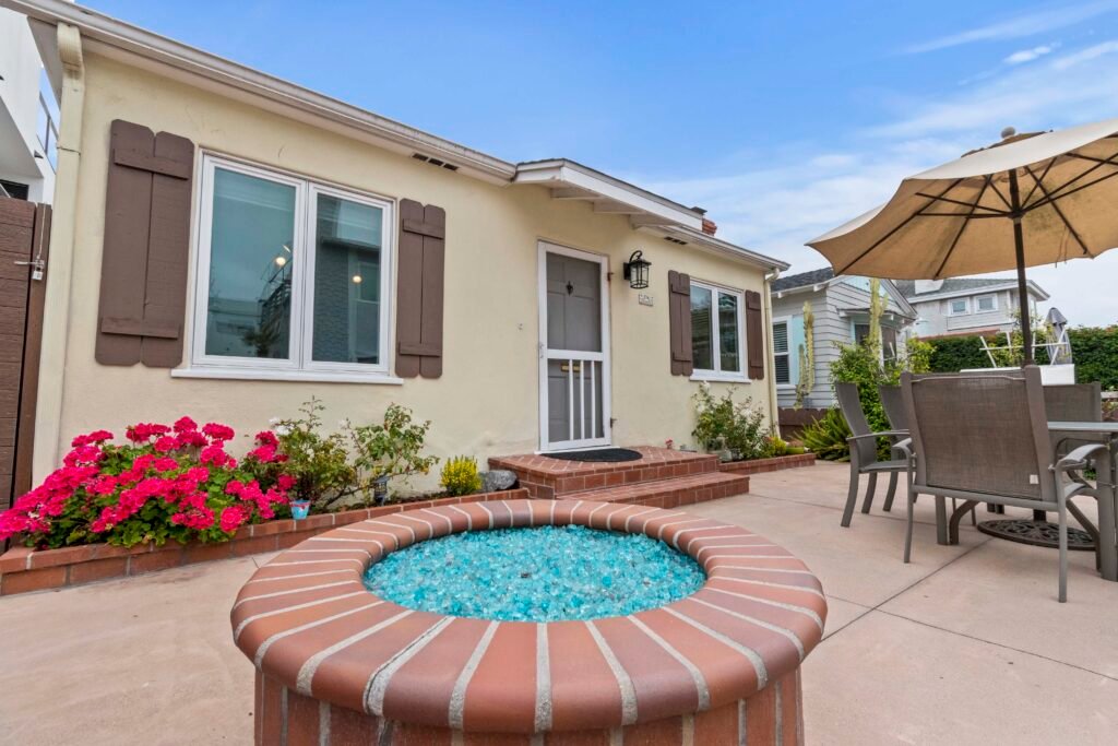 The porch area is fully surrounded by 3 foot walls, fences, colored cement, natural gas fire pit, barbecue and outdoor dining furniture with umbrella for 6. Beach ‘toys’, beach chairs/umbrella, boogie boards and bikes for adults & kids (don’t forget to bring their helmets) are available and all included. In the back there is a one car garage and one secure parking spot behind a gate, both accessible from the alley. There is also a private outdoor shower in the back patio with warm water for rinsing off(and showering) sand and salt water for those beach days.